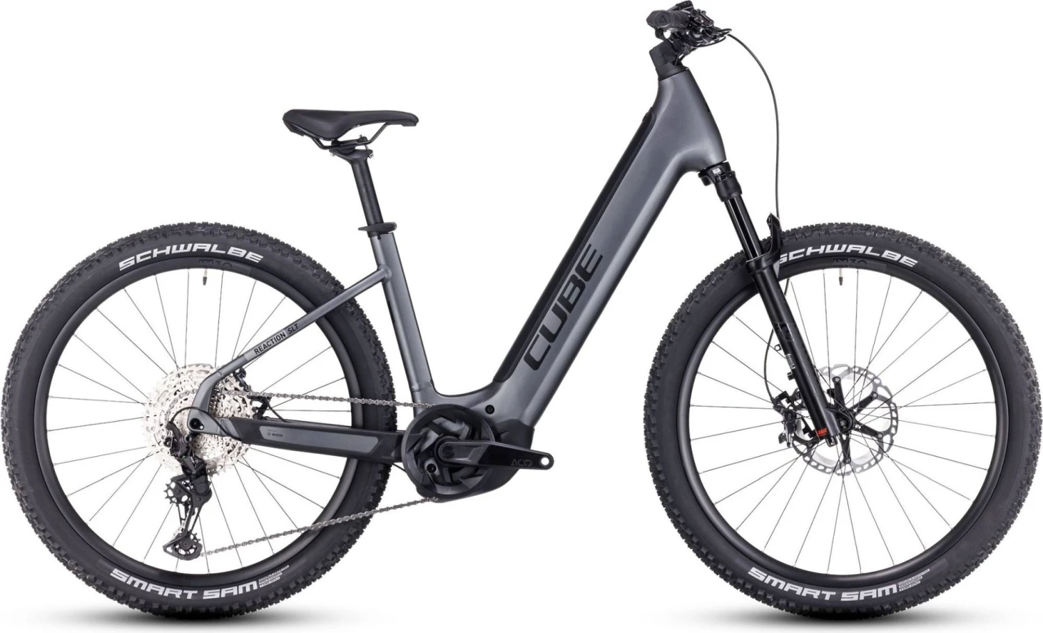 Jouw nieuwe elektrische mountainbike er strak en elegant uit moet zien, maar die onder het oppervlak uitgerust is met kwaliteitsonderdelen waar je u tegen zegt. Je wil er gewoon goed uitzien op de fiets, maar de prestaties zijn minstens net zo belangrijk. De Cube Reaction Hybrid serie is een serie met e-MTB’s die er stuk voor stuk gestroomlijnd uitzien, maar de Reaction Hybrid SLT maakt dit ook waar in de onderdelen. De Shimano XT 12-speed groepset, de Bosch Performance Line CX middenmotor met geïntegreerde 750 Wh accu en de hydraulische schijfremmen zorgen voor eindeloze avonturen met deze elektrische mountainbike.Â